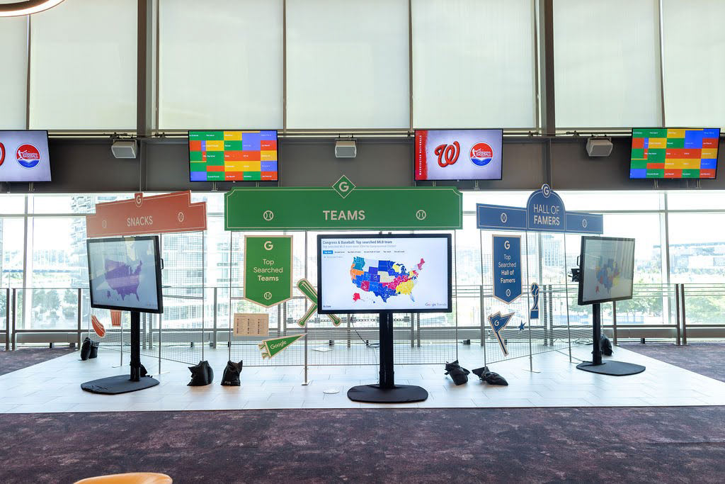 Google needed an engaging experiential presence at the Congressional Baseball Game that could connect fans with timely, relevant data in an interactive way. The ask was to design an on-brand experiential focal point that showcased top Google search trends related to Congress and baseball, while remaining approachable and engaging for a broad public audience.