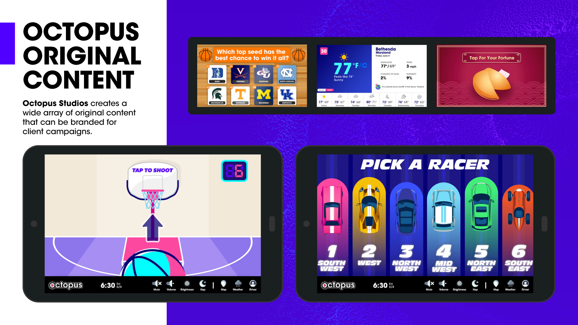 Realtime trivia, daily giveaways, and cash prizes, driver profiles, weather, and other local info, premium video for a highly engaged audience