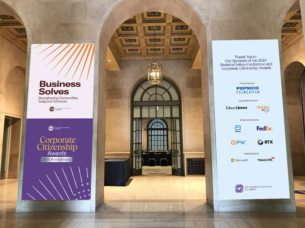 The U.S. Chamber of Commerce needed comprehensive creative support to design and deliver a wide range of in-person and virtual events focused on business growth, policy dialogue, education, and advocacy. The ask was to create cohesive, flexible event experiences and visual systems that could scale across multiple event types, audiences, and formats throughout a busy fall event season.